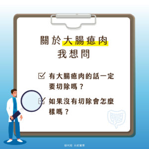 但某些特殊情況會因為切除瘜肉的風險很高,比如病患的凝血功能異常,或是瘜肉太大,就要經過評估再決定是否切除。