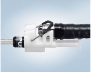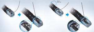 ERCP需要反覆使用多個器械,將導引鋼絲留在膽管中,沿著導引鋼絲能夠更輕易地插入處置工具,所以十二指腸鏡具有導引鋼絲固定功能(中心鎖),以便讓處置器具拔出時不會將其同時拔出。TJF-Q290V除了增加中心鎖的固定強度,更容易固定細的導引鋼絲之外,還新增了中心鎖的側鎖,有比中心鎖更高的固定強度。操作者可以在兩種固定方式之間選擇性使用雙重鎖定功能。